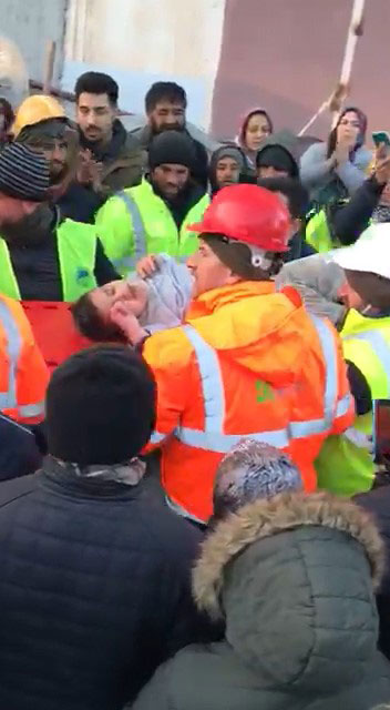 Ekipler, Zonguldak'tan gelen maden işçileriyle yürüttükleri çalışmalarda, depremde enkaz altında kalan 13 yaşındaki Enes adlı çocuğu, 65 saat sonra kurtarmayı başardı.