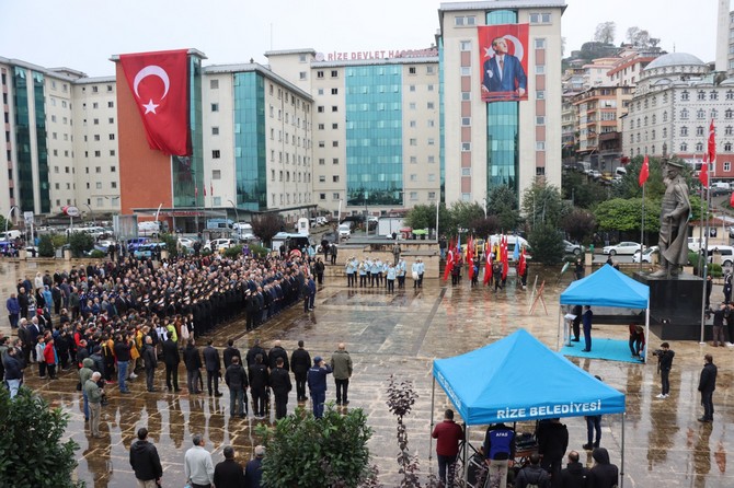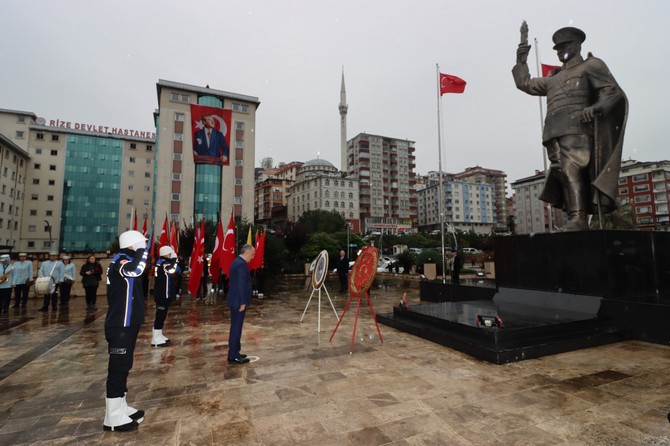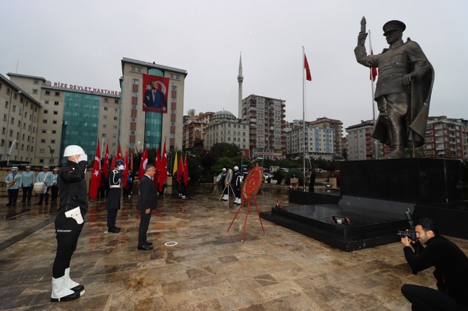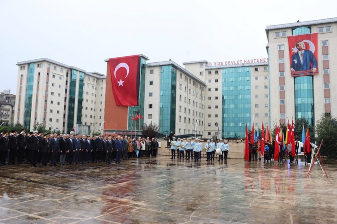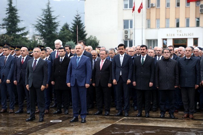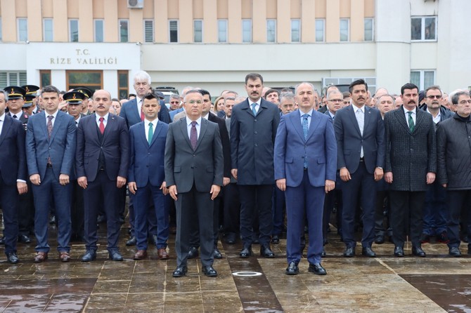 Valilik Tören alanında Rize Valisi Kemal Çeber ve Belediye Başkanı Rahmi Metin, Atatürk Anıtı'na çelenk sundu. Saat 09.05'te sirenlerin çalmasıyla saygı duruşunda bulunuldu, ardından İstiklal Marşı okundu.