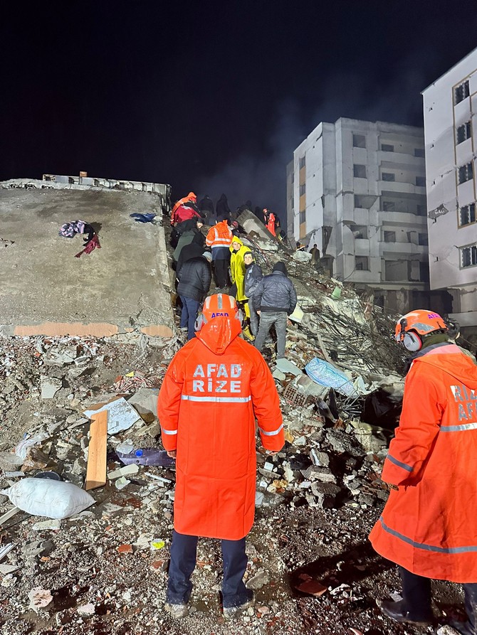 Merkez üssü Kahramanmaraş'ın Pazarcık ve Elbistan ilçeleri olan ve 10 ili etkileyen 7,7 ve 7,6 büyüklüğündeki depremlerin ardından Rize'den bölgeye giden AFAD ve Rize Belediyesi ekipleri, Nurdağı ilçesinde çalışmalarını sürdürüyor.