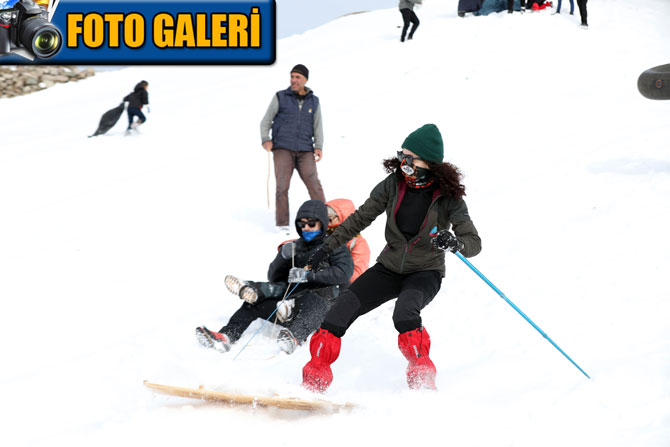 Yerli ve yabancı turistlerin mangal yakıp horon oynayarak karın tadını çıkardığı şenlikte, bazıları da naylon poşetlerle kaymaya çalıştı.