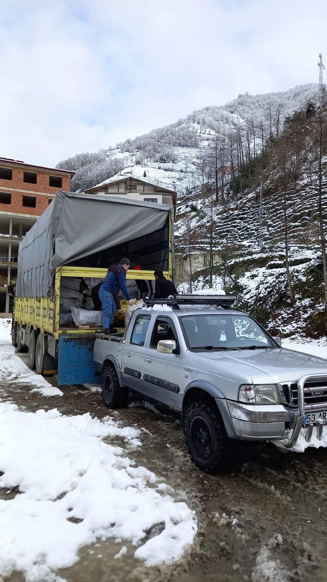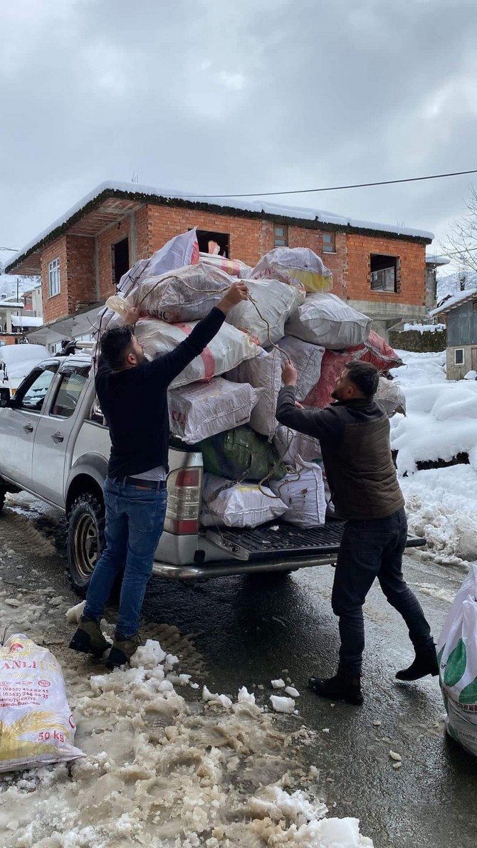 Rize'de vatandaşlar şehir merkezindeki 6 noktaya yardım ulaştırdı.