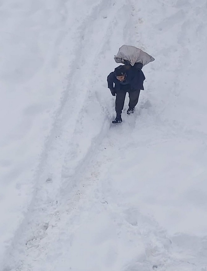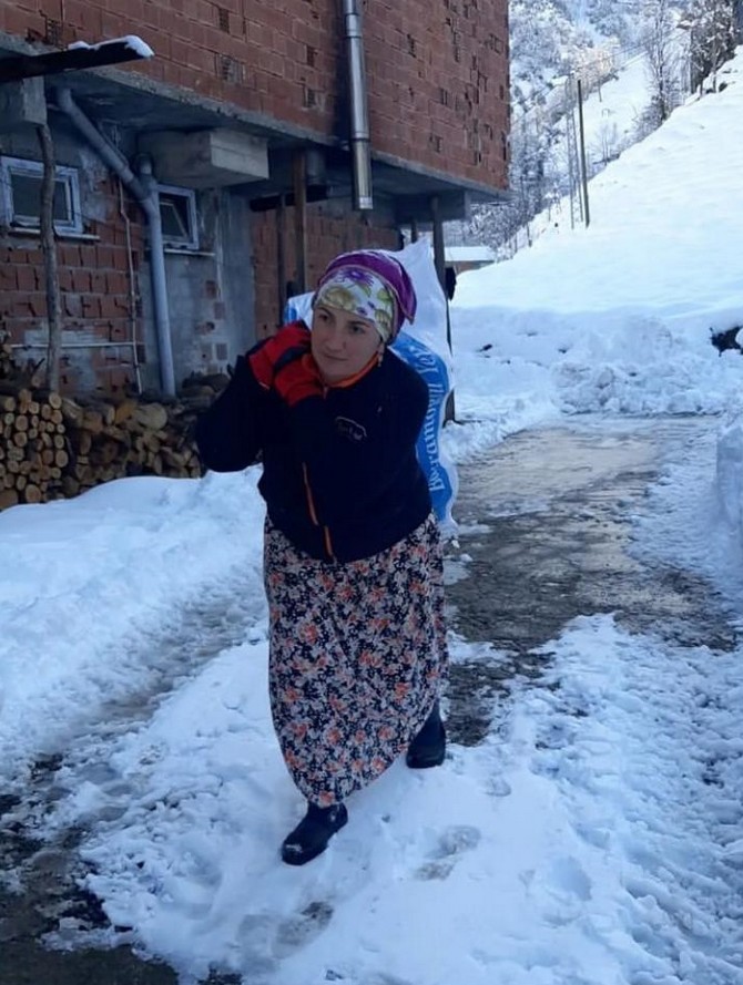 Rize'nin Andon olarak bilinen Küçükçayır köyünde deprem bölgesine gönderilmek için toplanan odun ve eşyaları kar kaplı yollarda kadınlar sırtlarında taşıyor. Yaşlı bir kadının sırtına yüklediği odun çuvalını karlı kaplı yolda sırtında taşıması dikkat çekti.