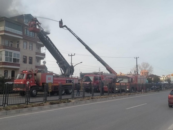 Alınan bilgiye göre, Sanayi Sitesi karşısında Yıldıray Aygün'e ait 5 katlı evin çatısı bugün akşam saatlerinde bilinmeyen bir nedenle yanmaya başladı.