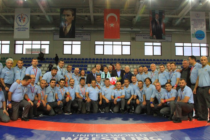 Diğer yandan milli hakemlerimizden Sadettin Yücel jübile yaptı. 130kilo finalini yöneten Sadettin Yücel daha sonra bantlarını ve düdüğünü kendisi gibi hakem olan oğlu Mehmet Gürhan Yücel’e devretti. Federasyon Başkanı Musa Aydın’da bu zamana kadarki emeklerinden dolayı Sadettin Yücel’e teşekkür ederek plaket verdi.