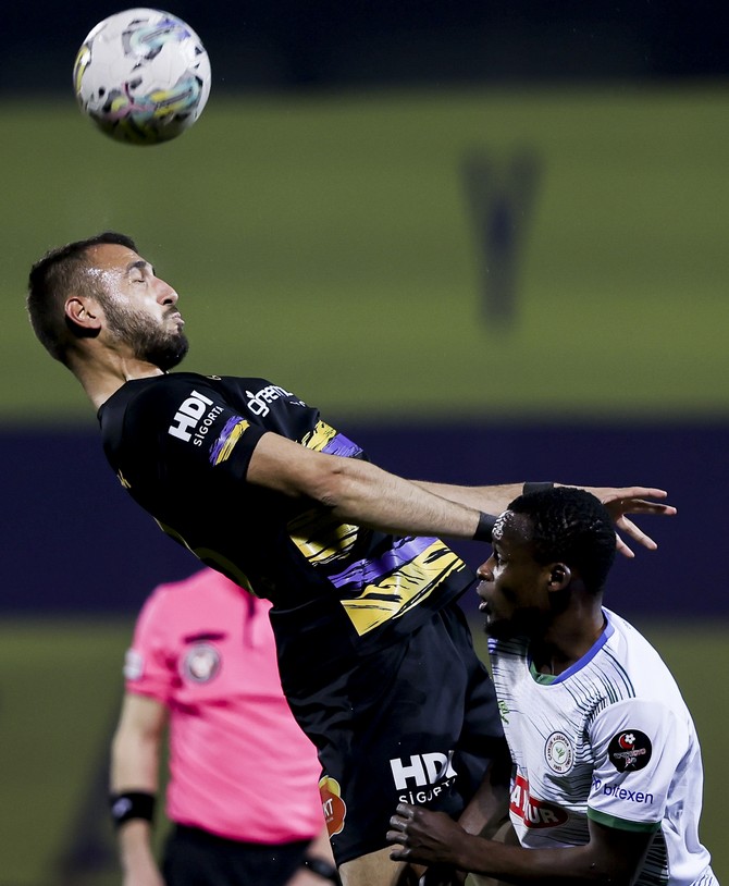 21. dakikada Azubuike’nin pasında Amilton’un ceza sahası dışı sağ çaprazından yaptığı sert vuruşta meşin yuvarlak kaleci Harun’un müdahalesiyle kornere çıktı.