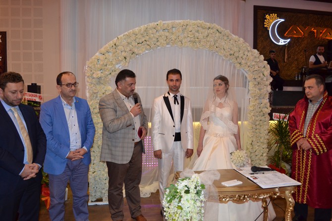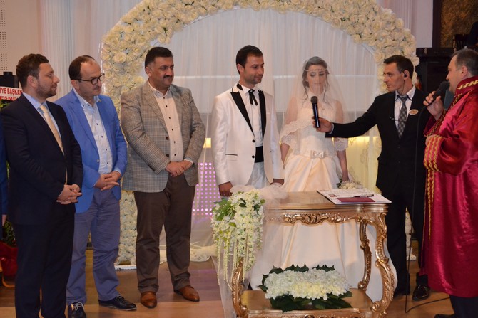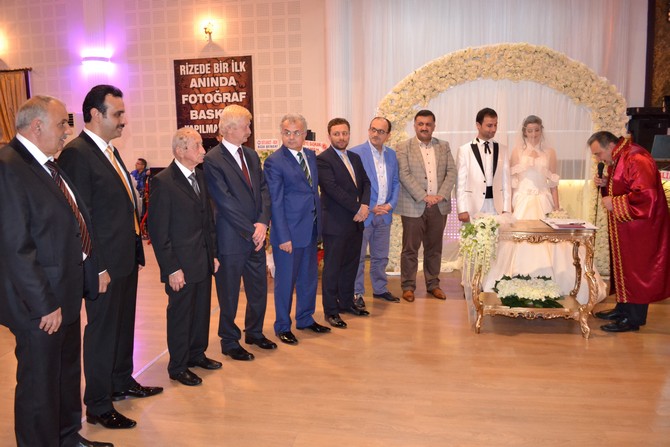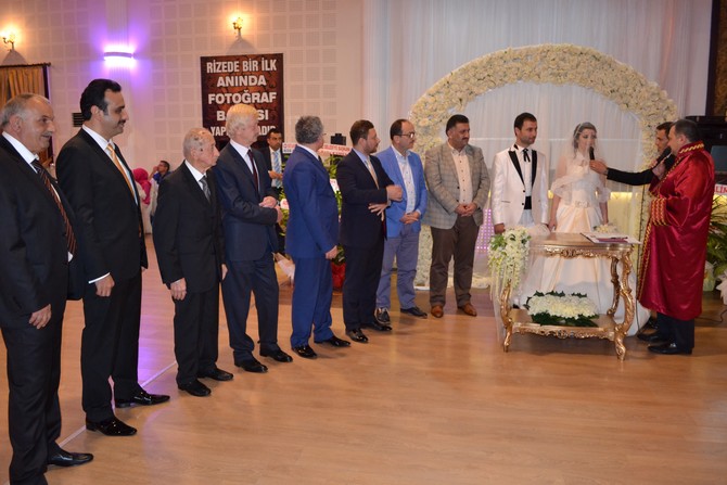 Aytaç Düğün Salonunda dün akşam gerçekleşen düğün töreninde çiftin nikah şahitliklerini Rize Milletvekili Hasan Karal ve Hikmet Ayar, Rize Belediye Başkanı Prof. Dr. Reşat Kasap, Ak Parti Rize İl Başkanı Muhammed Avcı, Rizespor Kurucu Başkanlarından Muharrem Kürkçü, Rizespor’un Eski Futbolcularından Hüsnü Kürkçü ile Adil Bayraktaroğlu ve Selim Kanca yaparken; düğün törenine ayrıca, çiftin yakınlarının yanı sıra, Rize İl Emniyet Müdürü Adem Çakıcı, Rize İl Genel Meclisi Başkanı Mehmet Kazancı, Güneysu Belediye Başkanı Halil Turan, İl Afet ve Acil Durum İl Müdürü Şakir Kurk, İl Göç İdaresi Müdürü Enes Tüfekçi, Yusuf Karali Eğitim Merkezi Müdürü Mehmet Bilgin, Çaykent Belediye Başkanı Hasan Kara, Ak Parti Rize İl, Kadın Kolları, Merkez, İlçe Yönetim Kurulu Üyeleri, siyaset, bürokrasi ve iş dünyasından çok sayıda kişi katıldı.