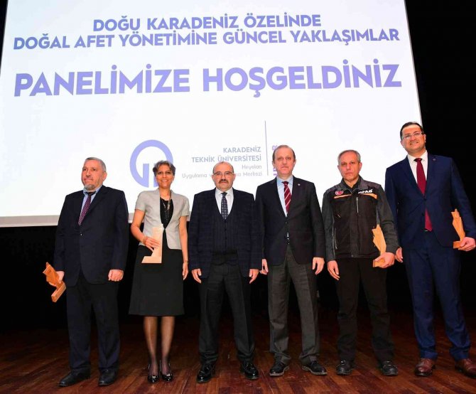 Karadeniz Teknik Üniversitesi (KTÜ) Heyelan Uygulama Araştırma Merkezi başkanlığında "Doğu Karadeniz Özelinde Doğal Afet Yönetimine Güncel Yaklaşımlar" paneli düzenlendi. Osman Turan Kültür ve Kongre Merkezi'nde düzenlenen panele Trabzon Valisi İsmail Ustaoğlu, KTÜ Rektörü Prof. Dr. Hamdullah Çuvalcı, akademisyenler ve öğrenciler katıldı. KTÜ Heyelan Uygulama Araştırma Merkezi Yönetim Kurulu Başkanı Prof. Dr. Arzu Fırat Ersoy'un moderatörlük yaptığı panelde AFAD Trabzon İl Müdürü Ömer Kıratlı, DSİ 22. Bölge Müdürü Cengiz Han Kılıçaslan, KTÜ İnşaat Mühendisliği Hidrolik Anabilim Dalı Başkanı Prof. Dr. Ömer Yüksek konuşmacı olarak yer aldı.