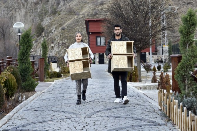 Bu bağlamda soğuktan en çok etkilenen hayvanlardan kediler için hareketle geçen öğrenciler şehrin farklı yerlerine yerleştirilmek üzere kendi imkanlarıyla 30 tane kedi evi yaptırdı.