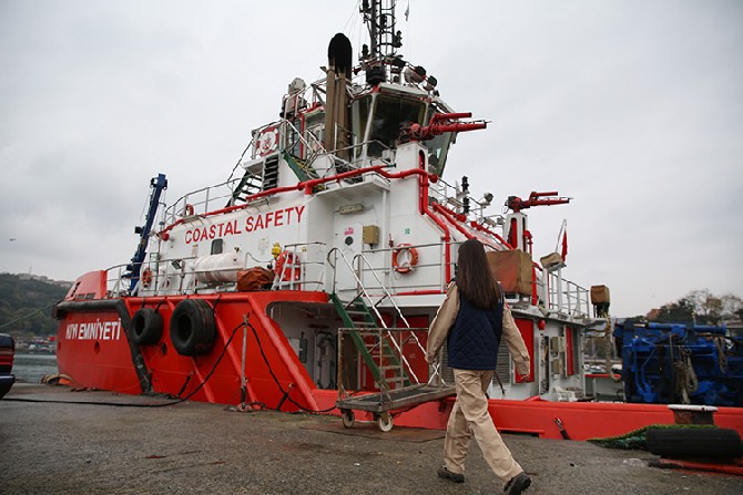 Kaptan Gizem Turan, 3 ay önce göreve başladığı Kurtarma-8 römorköründeki deneyimli 1. kaptan ve diğer gemi personeliyle birlikte, müdahale gerektiren durumlarda denize açılıyor.