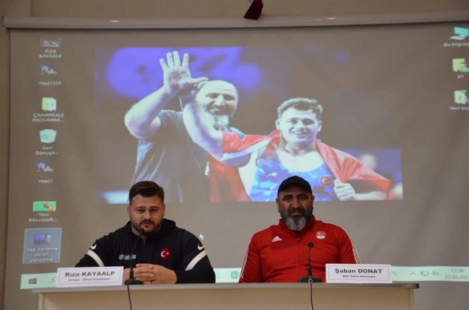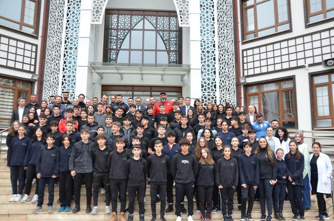 Rize’deki kampa katılan Milli Güreşçi Rıza Kayaalp ile Antrenör Şaban Donat, Güneysu Spor Lisesinde düzenlenen kariyer günü etkinliğine katıldı.