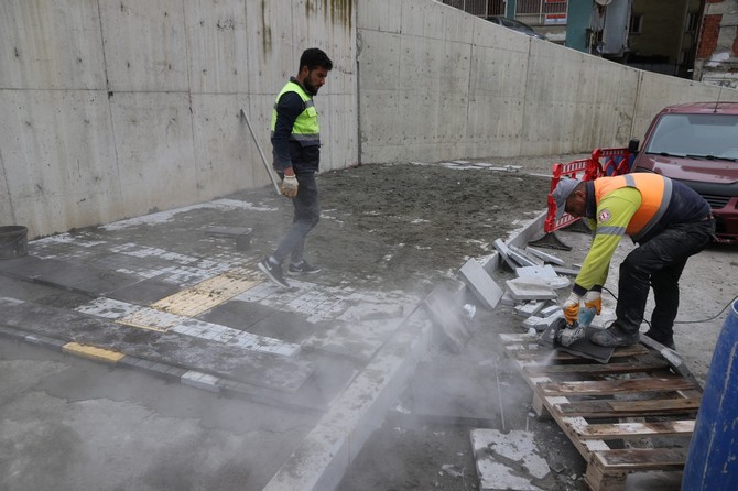 Şehir merkezinden Dosma mevkii dağ dibi çevre yoluna ulaşım sağlayan Pazar Caddesinde ayrıca bir yandan da yaya kaldırım çalışmaları devam ediyor.