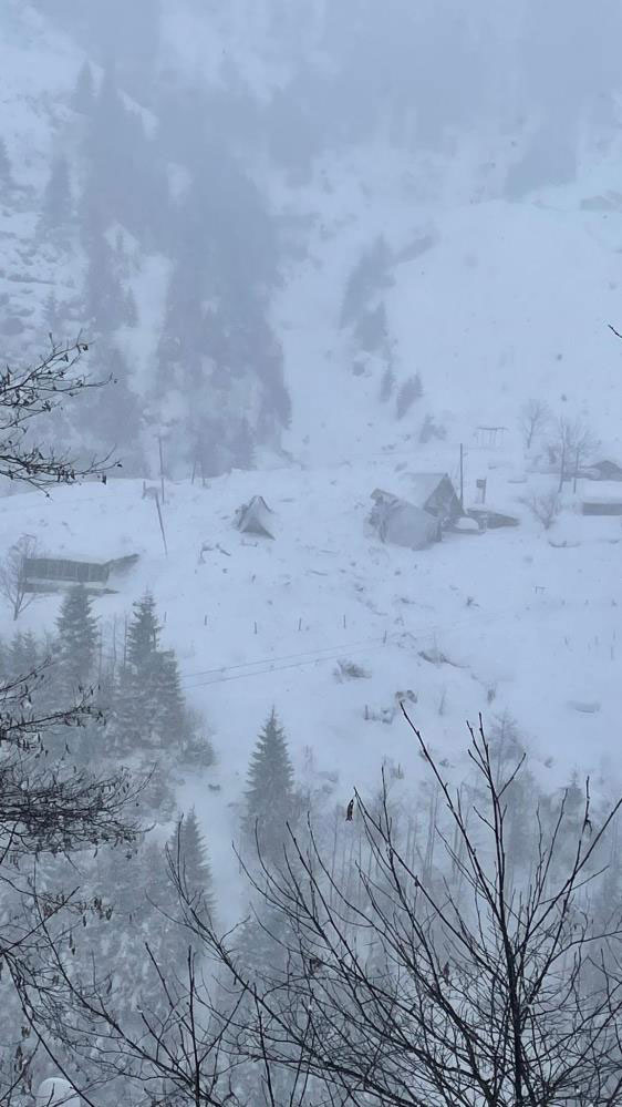 Rize'nin Çamlıhemşin ilçesine bağlı Avusor Yaylasında yaşanan çığ nedeniyle 3 bungalov ev kar altında kaldı.