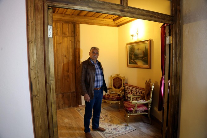 Yaptığı konaklama tesisinin bir ticarethanenin ötesinde kültür hizmeti vermesini amaçladığını söyleyen Oflu, Osmanlı kapıları, çift tokmaklar ve selamlık dolapları ile eski konaklardaki gelin odalarının tümünü otelde bir araya topladıklarını dile getirdi.