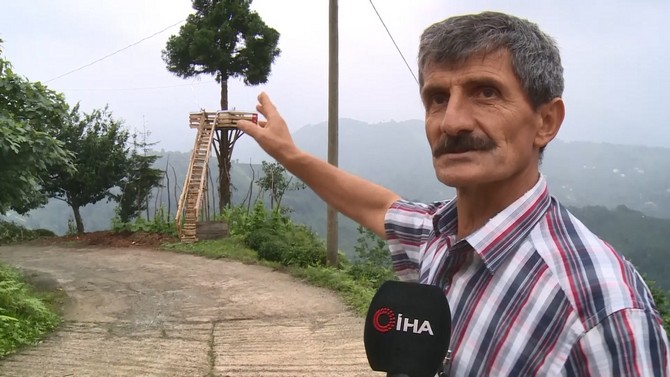 Rize'nin Güneysu ilçesine bağlı Bulutlu köyünde yaşayan Osman Çelik babasıyla birlikte diktiği ve o günlerden beri hayalini kurduğu terası yıllar sonra gerçekleştirdi. Çam ağacının gövdesine kalaslar ile inşa ettiği terası ağaca zarar vermeyecek şekilde çelik halatlarla bağladı. Elektrik bağlantısını da yapan Çelik şimdilerde manzaranın keyfini çıkarıyor.